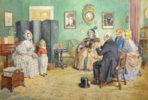 De titel van dit werk van Brock is de eerste regel van een beroemd gedicht - Casabianca - van de Britse dichteres Felicia Dorothea Hemans (1793-1835). Aquarel.Papier/Kartonmaat 49 x 72 cm. In excellent condition. Herkomst; Particuliere collectie Spijkenisse, Kunsthandel RG van Driel, Particuliere collectie Rotterdam. Verkocht. The boy stood on the burning deck Whence all but he had fled; The flame that lit the battle's wreck Shone round him o'er the dead.Yet beautiful and bright he stood, As born to rule the storm; A creature of heroic blood, A proud, though childlike form. etcetera Brock, Charles Edmund Geb. 5 februari 1870 ( Holloway, Londen) - gest. 28 februari 1938 (Cambridge - Verenigd Koninkrijk) Studeerde - nadat de familie van Londen naar Cambridge was verhuisd - enige tijd bij de beeldhouwer en tekenleraar Henry Wiles. Hij ontwikkelde zich tot een veelzijdig illustrator, maar hij schilderde ook portretten, waaronder dat van koningin Victoria en van notabelen en geestelijken van de universiteitsstad Cambridge. Brock, die zijn werk altijd tekende met zijn initialen C.E., werd een gezocht illustrator onder bekende schrijvers uit zijn tijd. Zo illustreerde hij vele boeken van Jane Austen.De stijl van zijn illustraties was afhankelijk van het verhaal en varieerde van verfijnde lijntekeningen en aquarellen (die paste bij de romans van de Victoriaanse auteurs) tot krachtige werken als het verhalen over typisch Britse karakters, zoals soldaten en paardrijders, betrof. Behalve voor boeken maakte hij ook illustraties voor tijdschriften zoals Punch.Brock werkte vaak samen met zijn drie jongere broers (onder hen de eveneens bekende illustrator Henry Matthew Brock - 1875-1960) in hun studio in Cambridge. Klik hieronder voor een over Brock