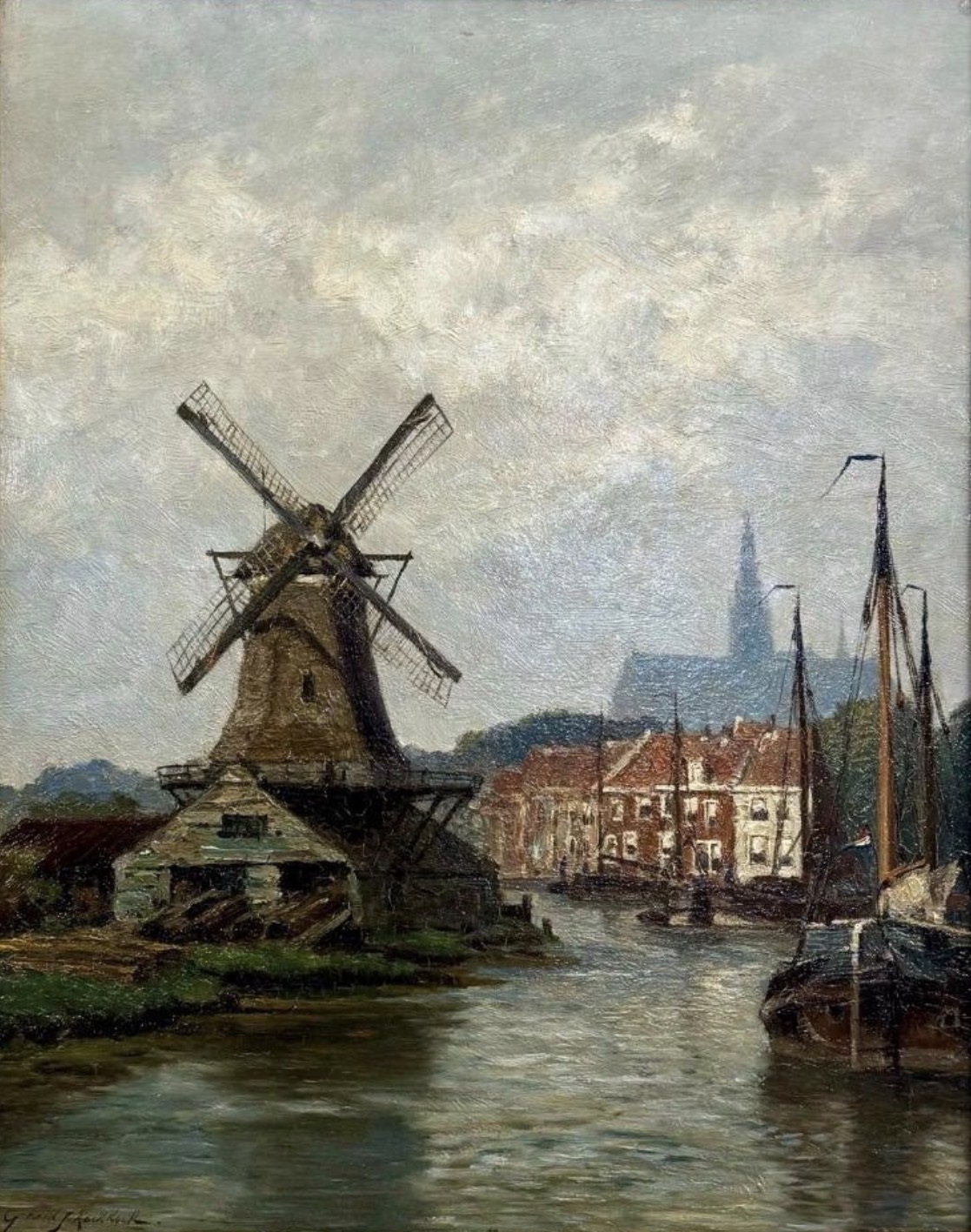 met molen D'Adriaan. Olieverf op paneel